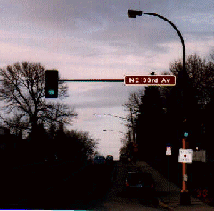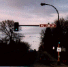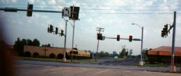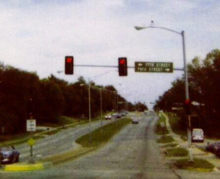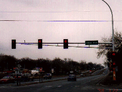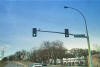 WISCONSIN- Wisconsin is noted for the horizontal signal head on the cross arm. This particular installation is on WI-35 in Hudson, and is fairly typical of a Wisconsin intersection. Most installations have a second signal assembly on the near corner at right side of the intersection, just as this photo shows. (Photo by Steve Riner)