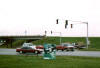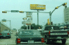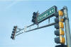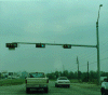 ARKANSAS- Here is a typical Arkansas installation; straight mono-tube arm, with two signals mounted overhead. This picture also shows the right angle double masts for eliminating pole "clutter". This photo was shot at North Little Rock. (Photo by Mark O'Neil)