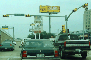 TEXAS- On the left is a picture of a "typical" Texas standard traffic signal. It's used by Texas DOT. Located at State Highway 6 and US 90-Alt, in Sugar Land. Note optical sensor for emergency vehicle interruption, between 2nd and 3rd signal. The right photo is a good representation of a Houston standard signal. It's located at US 59 (Southwest Freeway) and South Gessner, in Southwest Houston. (Photos by Marvin Suggs)